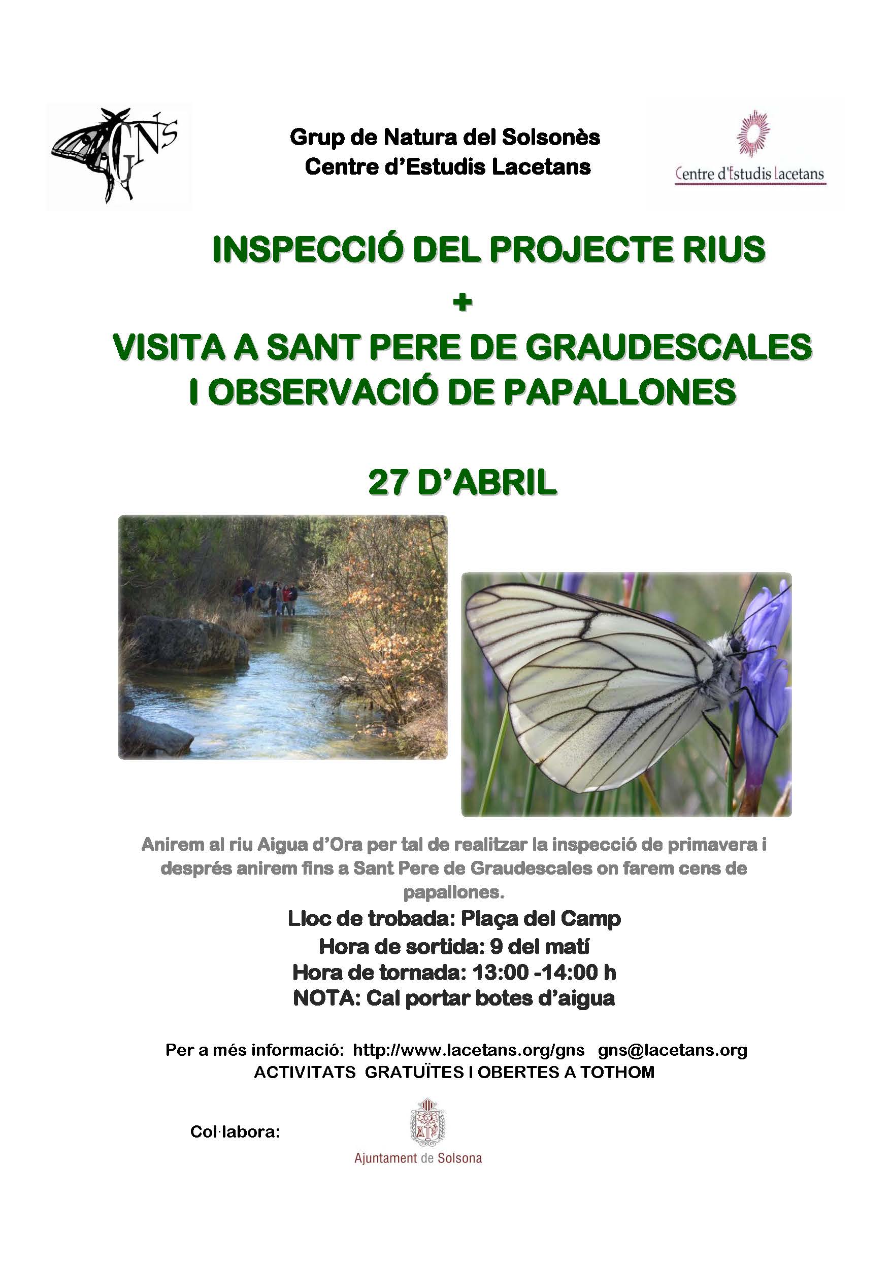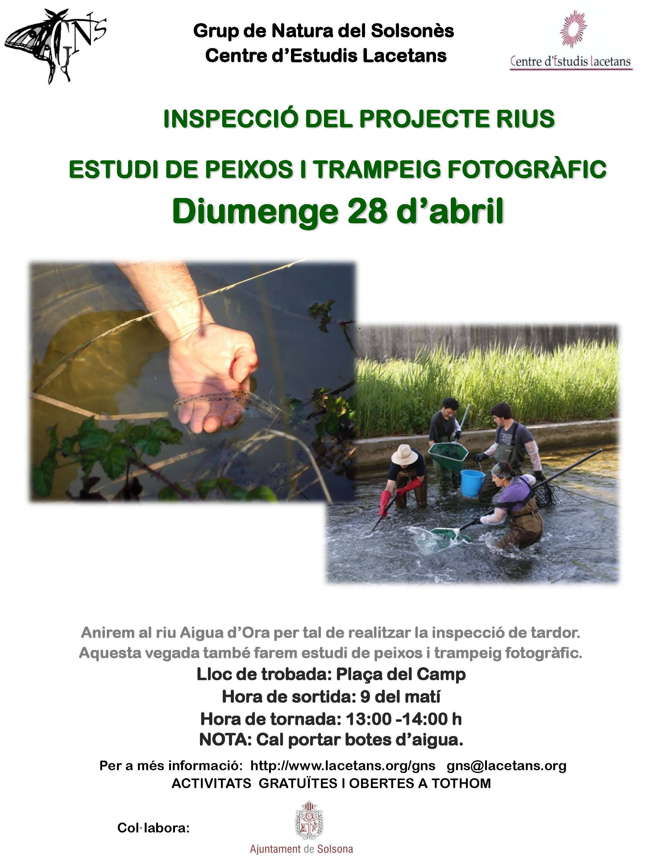 Anirem al riu Aigua d’Ora per tal de realitzar la inspecció de tardor. Aquesta vegada també farem estudi de peixos i trampeig fotogràfic.