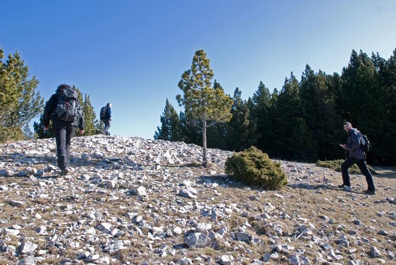 Les raquetes es van quedar al cotxe, com era de preveure. El diumenge passat una petita comitiva vam pujar als dos pics del Puig Sobirà durant la sortida organitzada per el Centre Excursionista i el Grup de Natura del Solsonès.