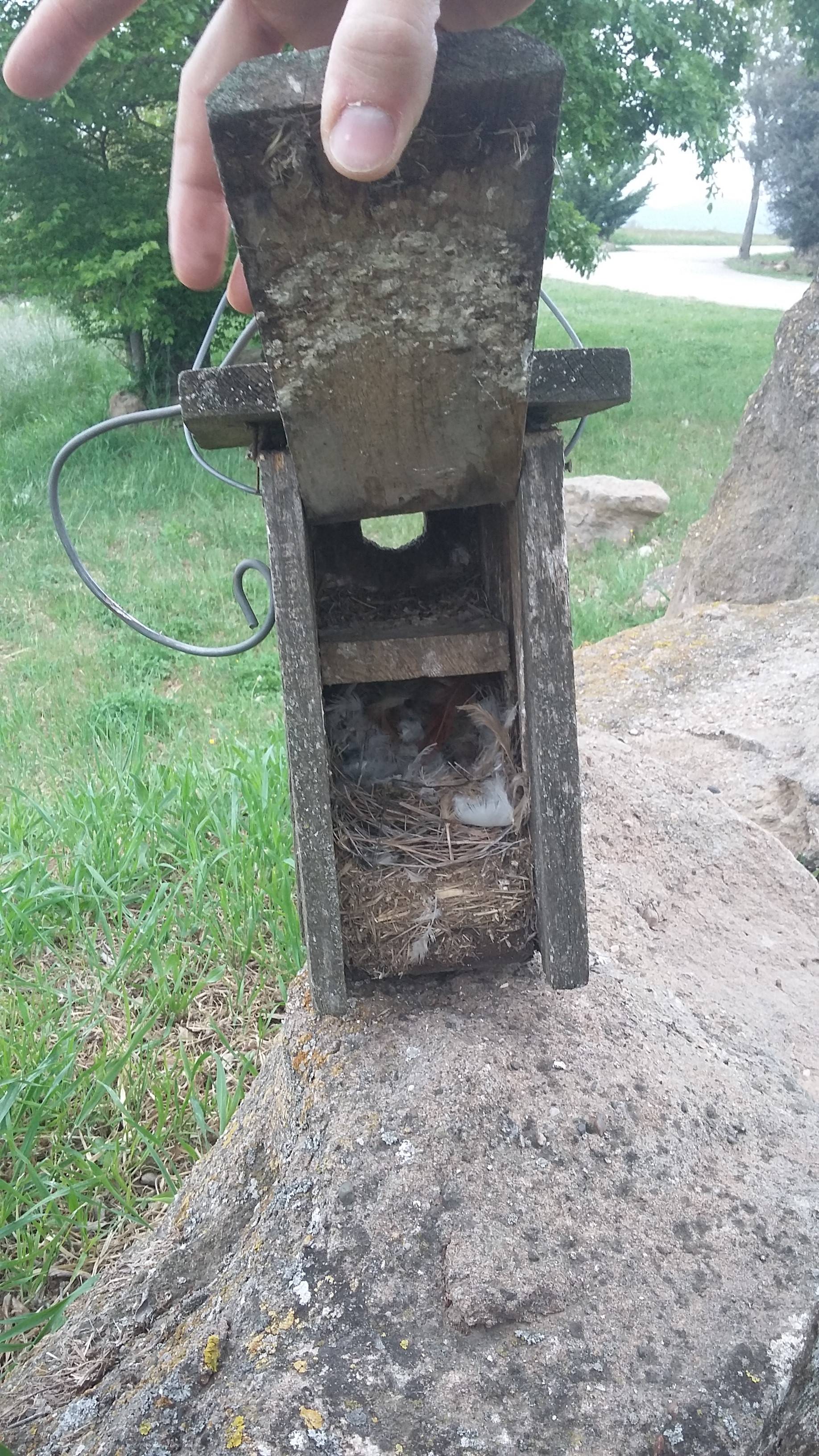 Tot i el mal temps, el diumenge 8 de maig, vàrem anar a revisar totes les caixes niu d’ocells i