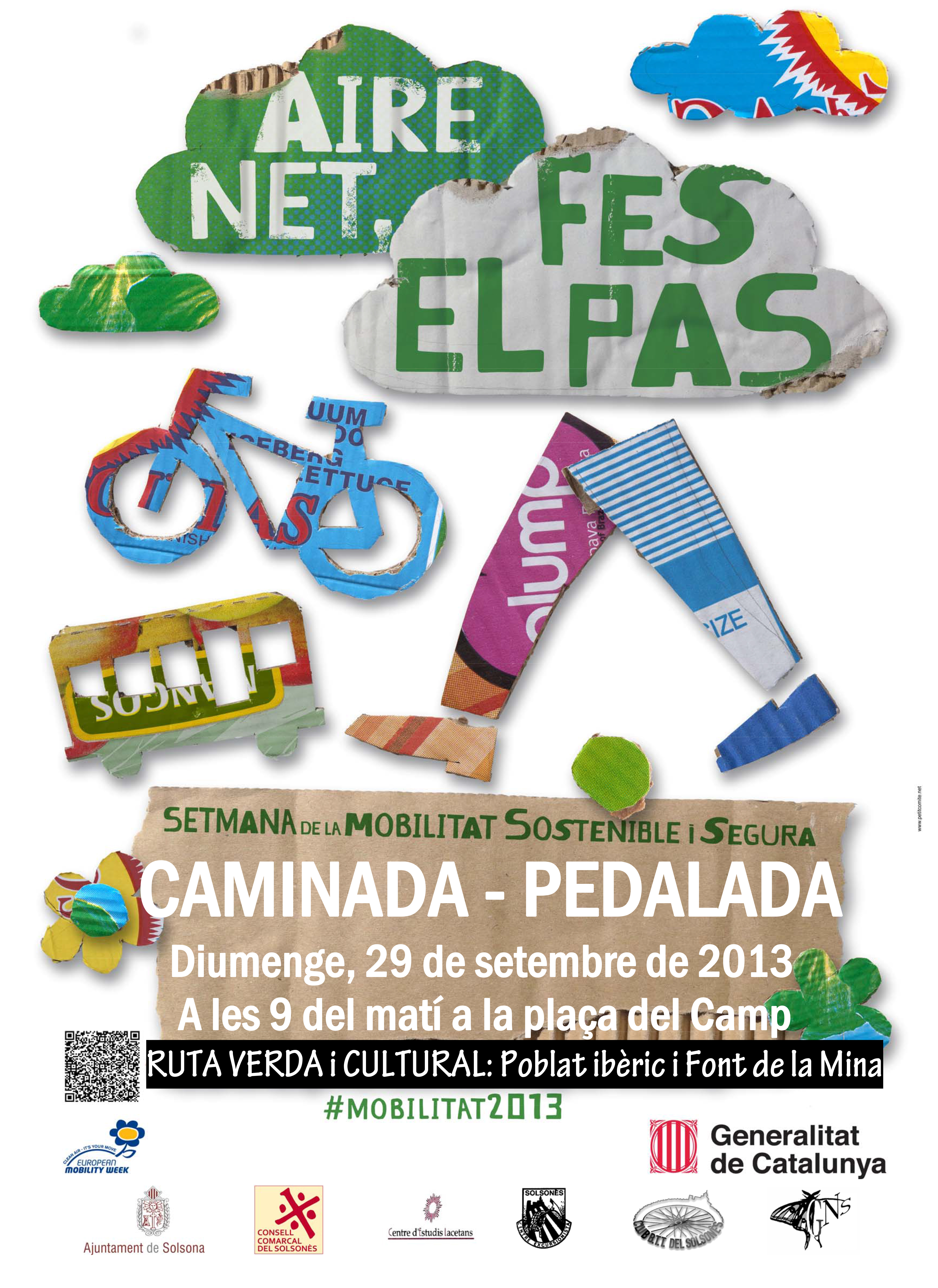 Del 22 al 29 de setembre se celebra a Catalunya la Setmana de la Mobilitat Sostenible i Segura. Sota el lema ‘Aire net – Fes el pas!’, la Setmana del 2013 proposa una cerca de noves formes de mobilitat, allunyar-nos del domini absolut del cotxe particular, cap a un transport més sostenible, segur i saludable. Canviant la nostra manera de desplaçar-nos podem augmentar els nostres nivells d’activitat física, contribuir a millorar la qualitat de l’aire que respirem a les ciutats i ajudar a prevenir els accidents de trànsit. Escollir el transport públic col·lectiu per anar a la feina, caminar o moure’s en bicicleta per anar de compres en comptes d’agafar el cotxe pot ser una bona forma de protegir i millorar la salut.